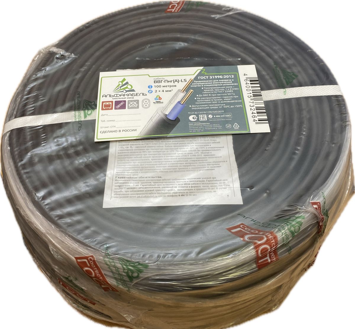 Кабель силовой ВВГп-нг(А)-LS 2х4 (100м) -0.660 ТРТС преимущества: