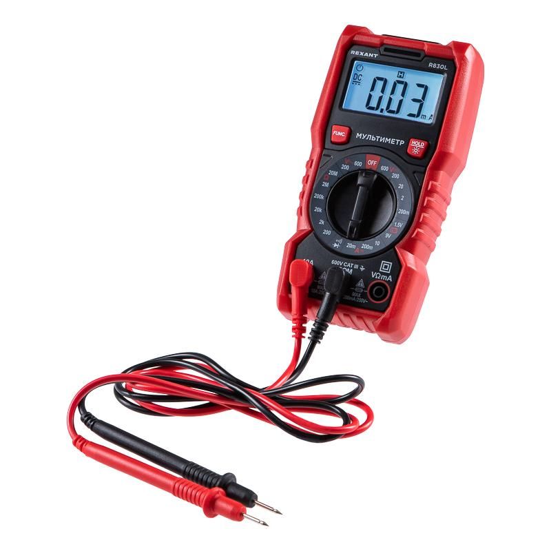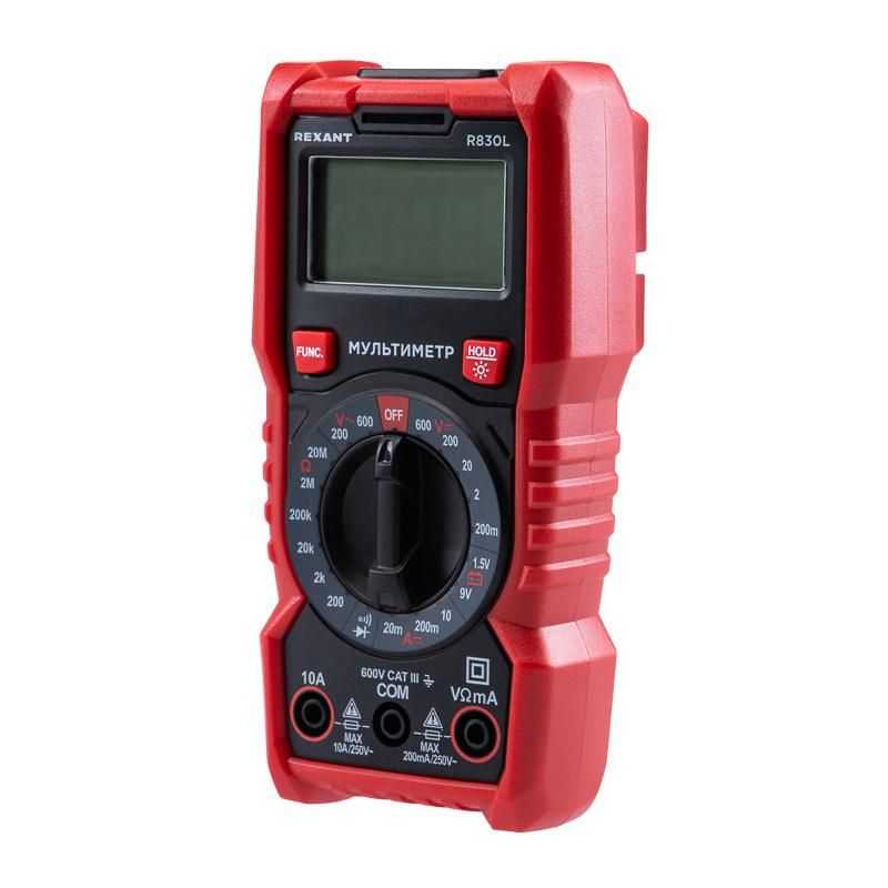 Портативный цифровой мультиметр R830L REXANT представляет собой современное устройство для точных измерений. Имеет ручной выбор диапазонов измерений. Предусмотрена функция удержания данных на дисплее DATA HOLD, которая позволяет запомнить данные, если измерение проводится в труднодоступном месте.